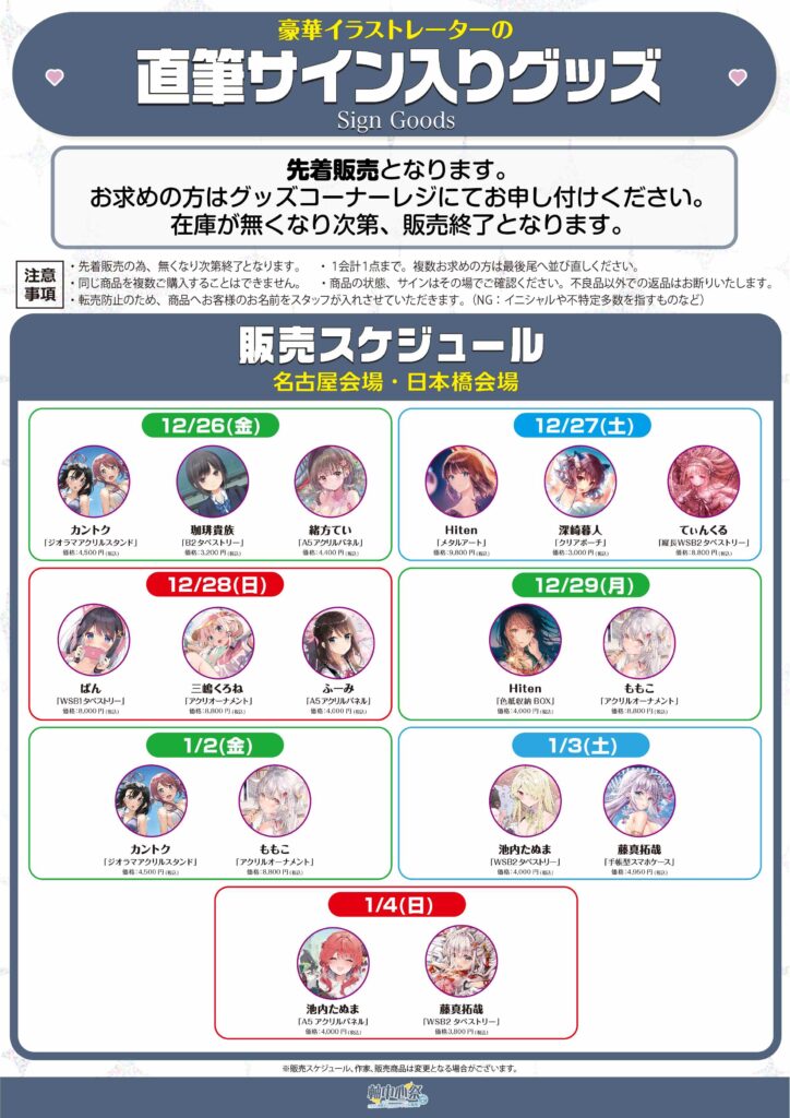 秋葉原店・名古屋店・日本橋店では恒例の直筆サイン入りグッズ販売を今回も開催。