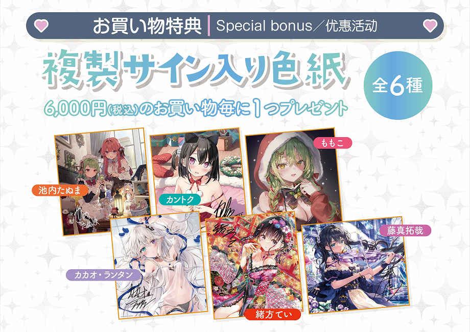 6,000円(税込)~11,999円(税込)までのご注文・・・複製サイン入り色紙を1枚プレゼント